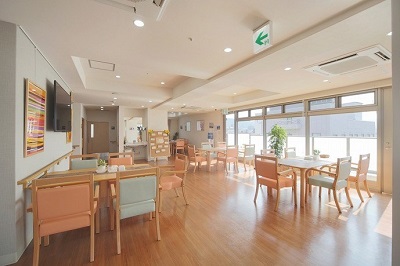 4階建ての3~4階部分が住宅型有料老人ホームとなっており、1~2階ではデイサービスやショートステイなどのサービスを提供。住宅型有料法人ホームに住む利用者さんも、必要に応じてサービスを利用可能です。また、足湯や岩盤浴ベッド、大浴場などの充実した設備で利用者さんがリラックスできる環境が揃っています。