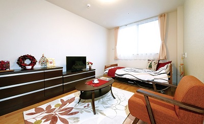 | 仕様 | 一般居室個室、2人部屋あり、温水洗浄機付トイレ、洗面所、緊急通報装置、テレビ回線、外線電話回線有り、エアコン、照明器具、カーテン、収納(部屋によって浴室、IHキッチン、洗濯機置場あり)など |