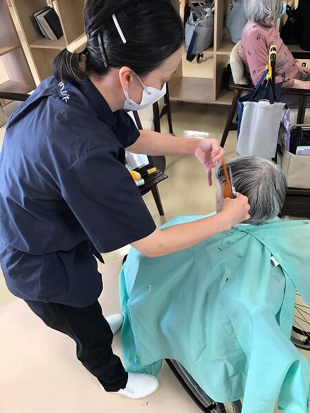 (中川さん)また訪問美容の日を楽しみにしているご家族の方もいて、「カットしているときにビデオ通話をしてほしい」と頼まれることも!今はコロナがあって難しいですが、訪問理美容の日に合わせてお見舞いに来るご家族の方もいました。20年近く同じ施設に施術へ伺っていると、次第にご家族と仲良くなる施術者もいます。美容師に会うことを楽しみにしてもらえるのも、ありがたいですよね。