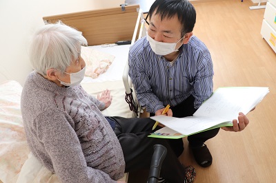 「寝たきりの方の中には、呼吸器などの医療機器を使っている方も珍しくはありません。そのため、機械やチューブに体や手が当たらないよう細心の注意を払っています」[/btp_box]