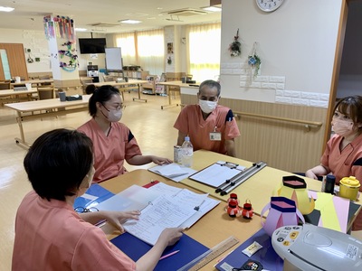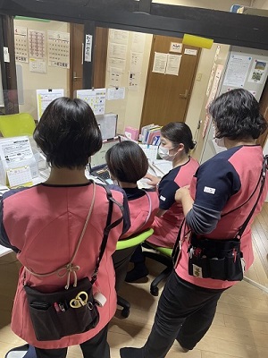 「後頭部の施術をするときに利用者様の頭を持ち上げるのは、ベッドカットならではの技術だと思います。施術中は利用者様に負担をかけないのももちろん大事なことではありますが、1つの施設で多いときは5~6人ほどをベッドカットで対応することもあるので、自分の体を労わることも大切なポイントです。無理な体勢で施術を続けると腰が痛くなるので、新人さんがベッドカットを習得する際には体の使い方などの細かい技術も伝えています」[/btp_box]