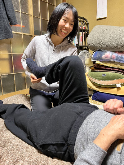 「寝たきりの方は頭を必要以上に動かすと負担に感じることも。あまり動かなくても済むように、頭の半分をすべて終わらせてからもう半分へ、という具合に進めています。また、施術時間が長引かないよう、15分ぐらいで終わるように心がけています」[/btp_box]