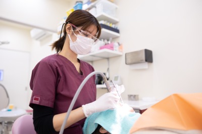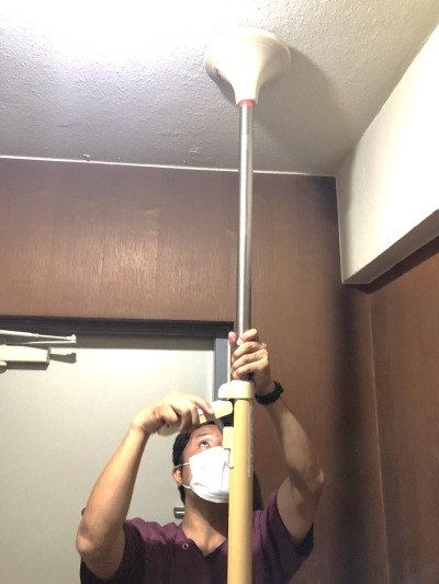 ヘアカットが終わったら、利用者様の洋服を整えます。ベッド上に髪の毛が残らないようにガムテープなどを使って丁寧に掃除したら、施術は終了です。