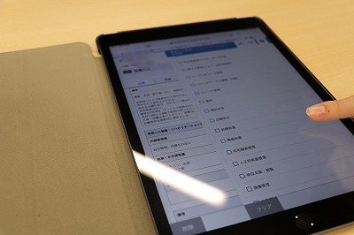訪問の頻度は、利用者さんの状態によって、毎日の方もいれば、週一、月一の方もいます。ご本人やご家族の方とお話ししながら、「前回と変わっているところはないか?寝起きはできているか?布団はたためるか?お部屋の衛生状態は?」など、いろんなことを観察して、iPadに細かく記録します。これは、利用者さんの状態と生活環境を、医師やケアマネジャーなど他職種の方と共有するためです。