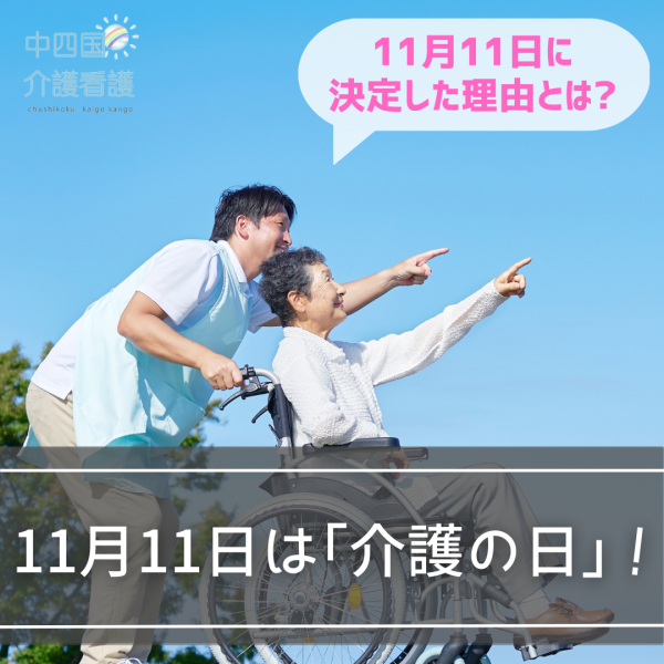 介護の日とは「いい日、いい日」にかけた語呂合わせで、11月11日となっているのです。覚えやすく、親しみやすくて素敵ですね。ちなみに、当初は「4月4日(よりよい介護)」「11月15日(いいかいご)」といった候補もありました。