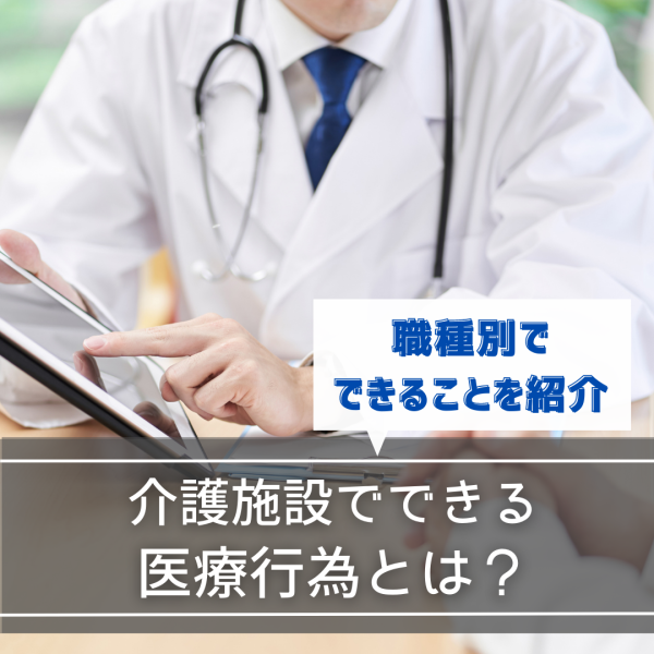 介護施設では、医師がいても医療施設よりできる行為が少ないことが分かります。病院のように設備や機器がそろっているわけはないため、医師がいるから何でもできるわけではないことを念頭に置いておきましょう。