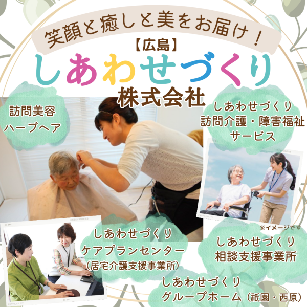 訪問理美容、訪問介護、居宅介護支援、相談支援、障がい者グループホームを展開!広島の「しあわせづくり株式会社」