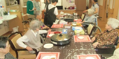 「介護施設様の施設内で施術させていただくため、アロマやお花、ヒーリング音楽を使って利用者様に『まるで美容室みたい!』と思っていただけるような空間の演出を心がけています」[/btp_box]