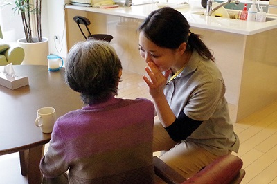 「寝たきりの方は頭を必要以上に動かすと負担に感じることも。あまり動かなくても済むように、頭の半分をすべて終わらせてからもう半分へ、という具合に進めています。また、施術時間が長引かないよう、15分ぐらいで終わるように心がけています」[/btp_box]