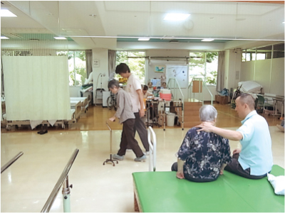 自宅などで療養生活を送る方に対し、訪問看護師とリハビリ専門職(理学療法士など)が身体状況に合わせたサポートを行っています。